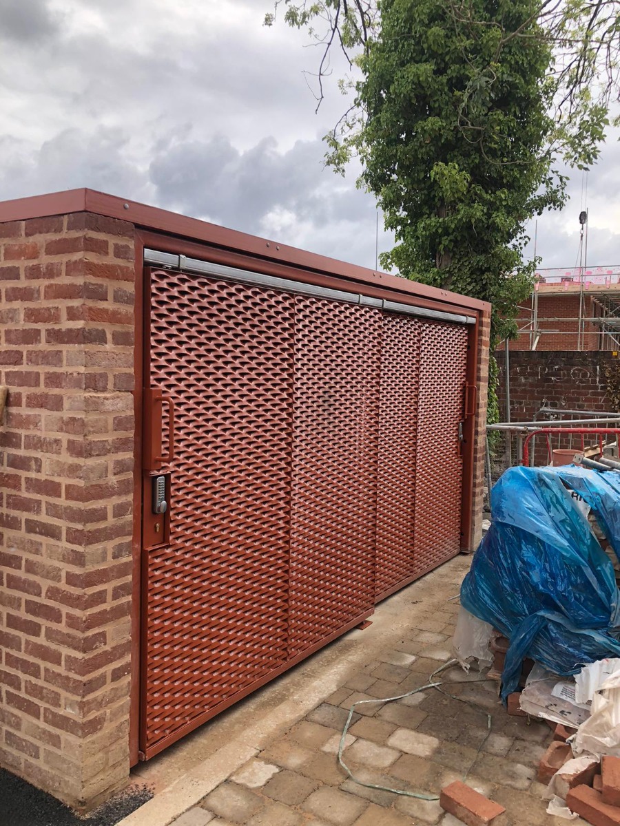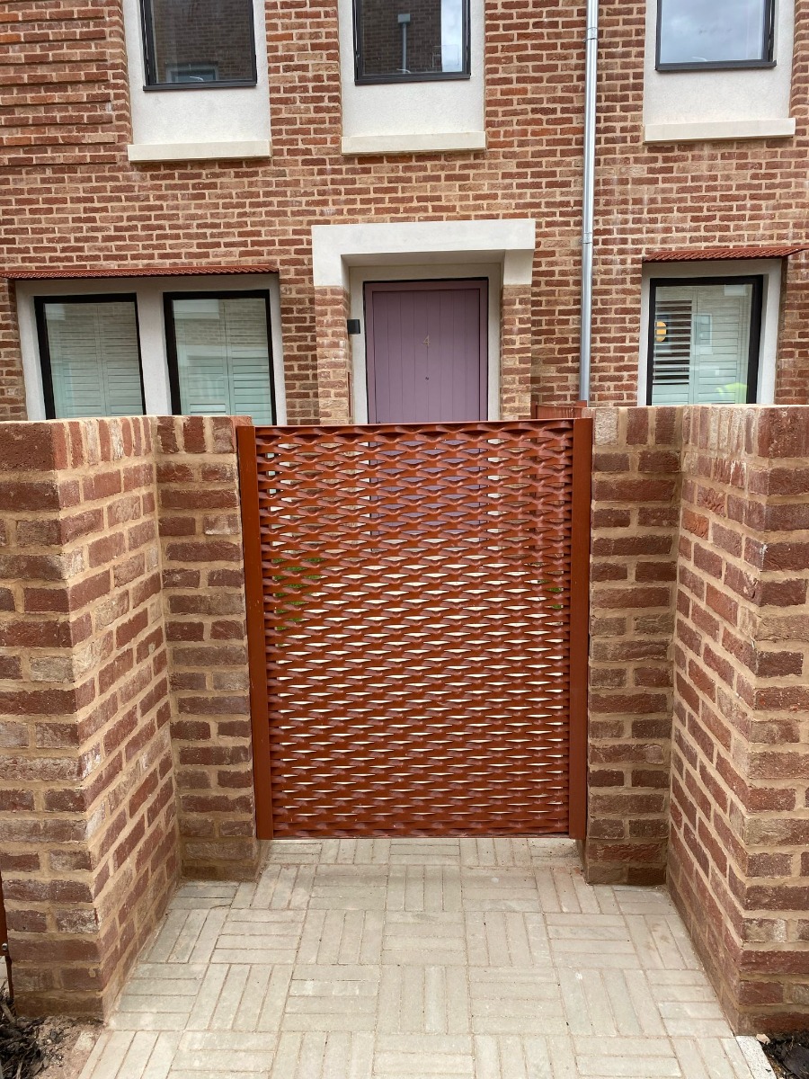 The expanded metal mesh was used across a wide range of elements on the site. This included all front garden gates, bin stores, bike stores, and meter cupboards. Applications ranged from swing gates through to sliding gates, allowing a consistent design language to run throughout the development.